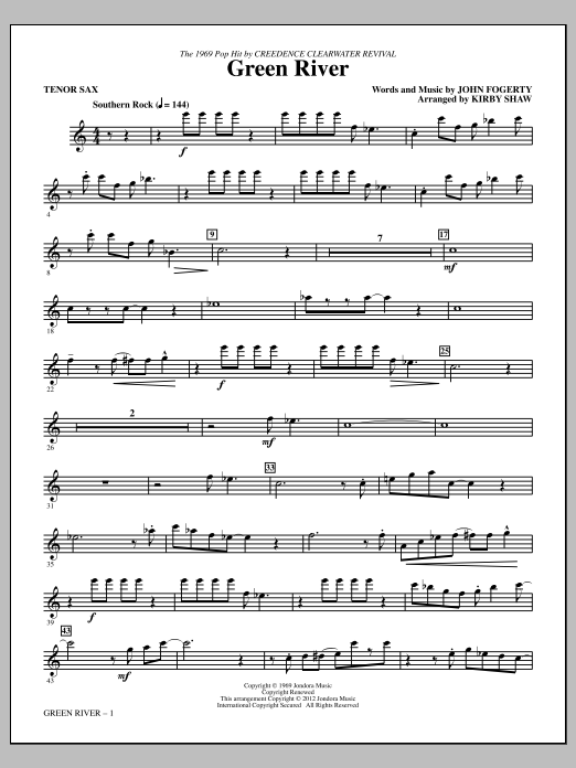 Download or print Kirby Shaw Green River - Tenor Sax sheet music, chords and digital score arranged for Choir Instrumental Pak. This Pop score includes 2 page(s).