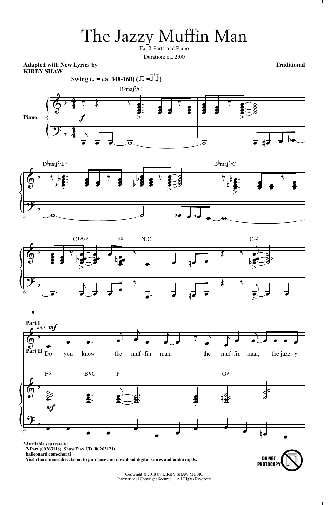 Download or print Kirby Shaw The Jazzy Muffin Man sheet music, chords and digital score arranged for 2-Part Choir. This Children score includes 7 page(s).