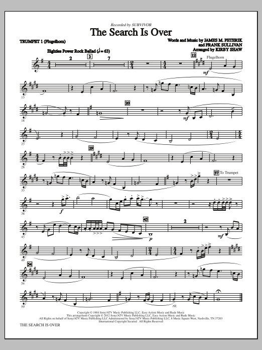 Download or print Kirby Shaw The Search Is Over - Bb Trumpet 1 (Flugelhorn) sheet music, chords and digital score arranged for Choir Instrumental Pak. This Pop score includes 8 page(s).