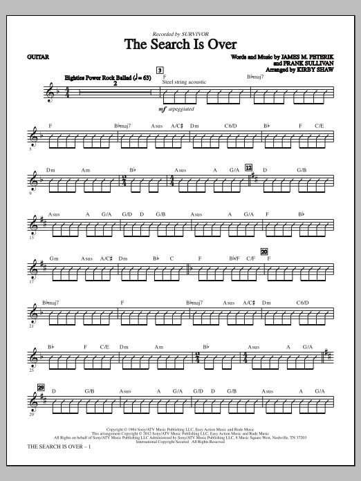 Download or print Kirby Shaw The Search Is Over - Guitar sheet music, chords and digital score arranged for Choir Instrumental Pak. This Pop score includes 2 page(s).