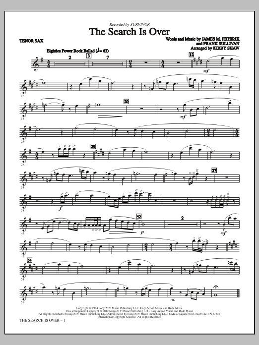 Download or print Kirby Shaw The Search Is Over - Tenor Sax sheet music, chords and digital score arranged for Choir Instrumental Pak. This Pop score includes 2 page(s).