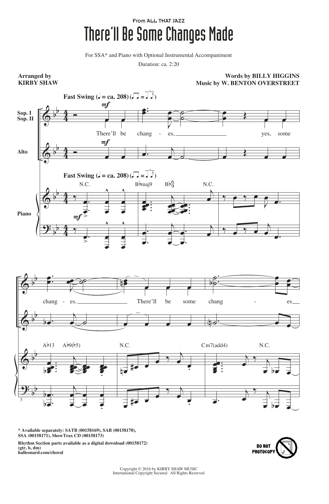 Download or print Kirby Shaw There'll Be Some Changes Made sheet music, chords and digital score arranged for SAB Choir. This Jazz score includes 11 page(s).