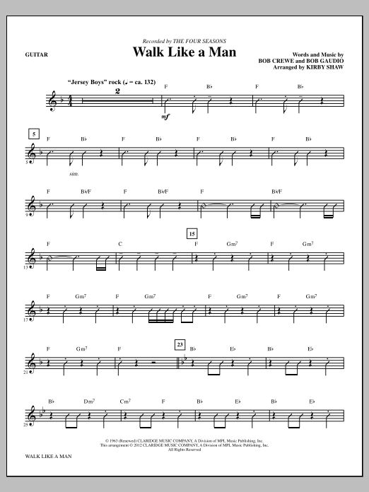 Download or print Kirby Shaw Walk Like A Man - Guitar sheet music, chords and digital score arranged for Choir Instrumental Pak. This Pop score includes 2 page(s).