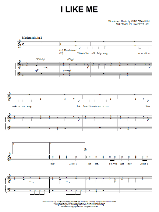 Download or print Kirk Franklin I Like Me sheet music, chords and digital score arranged for Piano & Vocal. This Christian score includes 5 page(s).