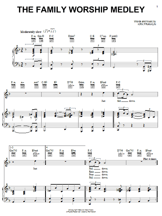 Download or print Kirk Franklin The Family Worship Medley sheet music, chords and digital score arranged for Piano, Vocal & Guitar Chords (Right-Hand Melody). This Christian score includes 7 page(s).