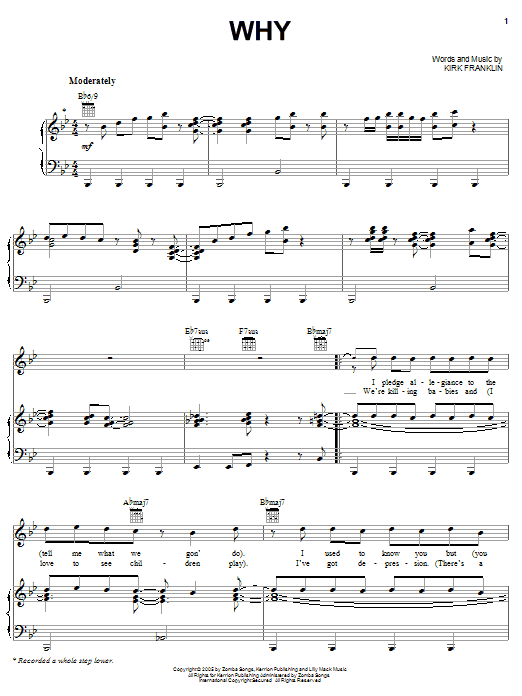 Download or print Kirk Franklin Why sheet music, chords and digital score arranged for Piano, Vocal & Guitar Chords (Right-Hand Melody). This Christian score includes 10 page(s).
