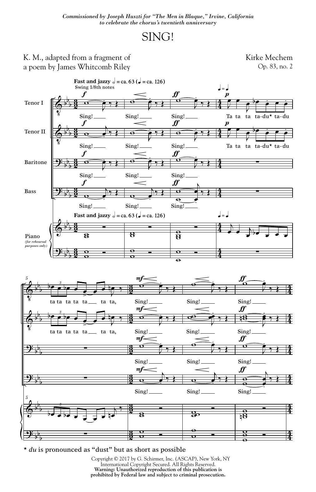 Download or print Kirke Mechem Sing! sheet music, chords and digital score arranged for TTBB Choir. This Concert score includes 13 page(s).