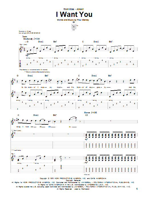 Download or print KISS I Want You sheet music, chords and digital score arranged for Guitar Tab. This Rock score includes 10 page(s).