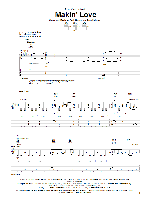 Download or print KISS Makin' Love sheet music, chords and digital score arranged for Guitar Tab. This Metal score includes 6 page(s).