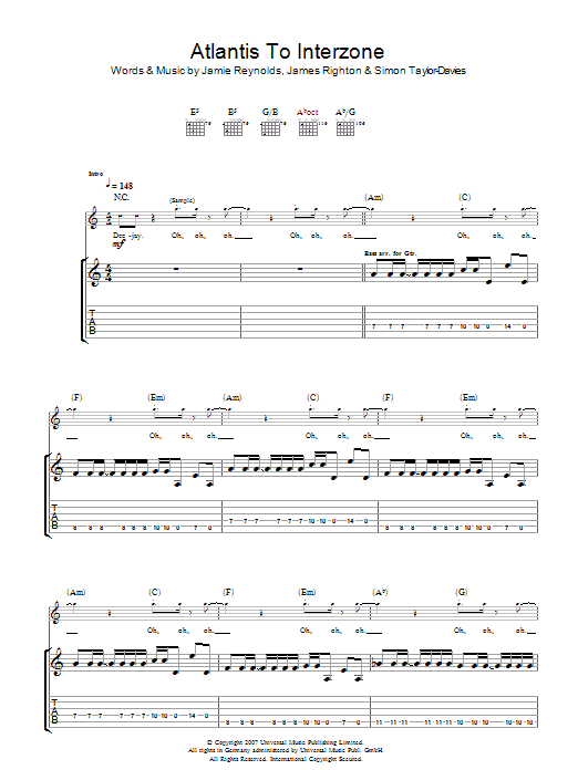 Download or print Klaxons Atlantis To Interzone sheet music, chords and digital score arranged for Guitar Tab. This Rock score includes 6 page(s).
