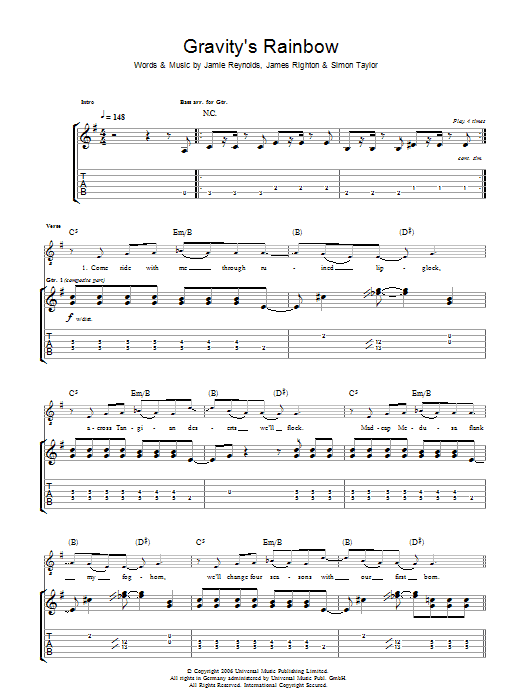 Download or print Klaxons Gravity's Rainbow sheet music, chords and digital score arranged for Guitar Chords/Lyrics. This Rock score includes 2 page(s).