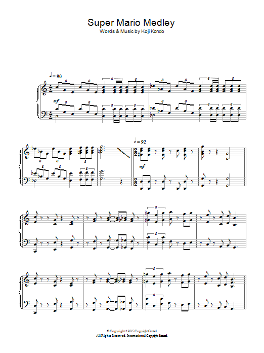Download or print Koji Kondo Super Mario Bros Theme sheet music, chords and digital score arranged for Piano Solo. This World score includes 9 page(s).