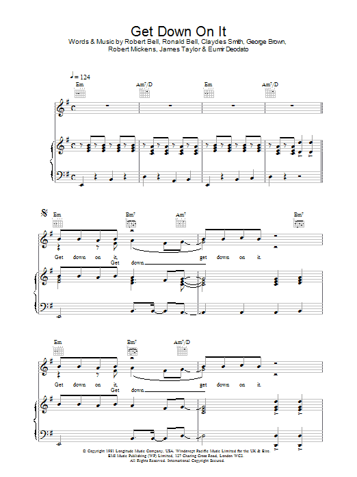 Download or print Kool And The Gang Get Down On It sheet music, chords and digital score arranged for Piano Chords/Lyrics. This Disco score includes 2 page(s).