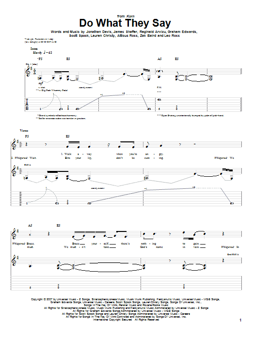 Download or print Korn Do What They Say sheet music, chords and digital score arranged for Guitar Tab. This Metal score includes 7 page(s).