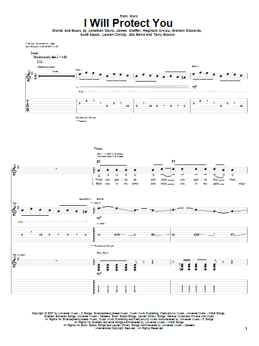 Download or print Korn I Will Protect You sheet music, chords and digital score arranged for Guitar Tab. This Metal score includes 11 page(s).