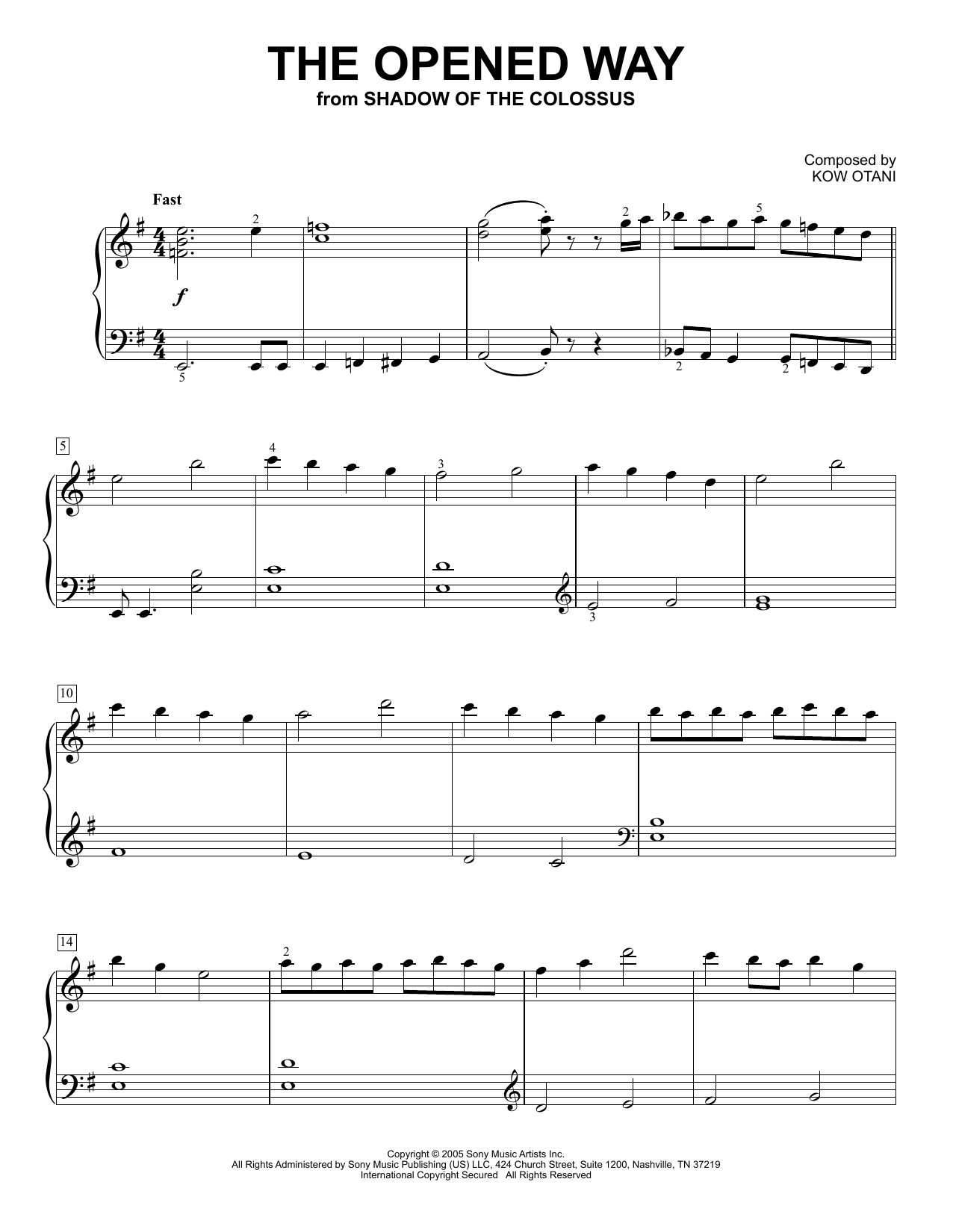 Download or print Kow Otani The Opened Way (from Shadow Of The Colossus) sheet music, chords and digital score arranged for Easy Piano Solo. This Video Game score includes 3 page(s).