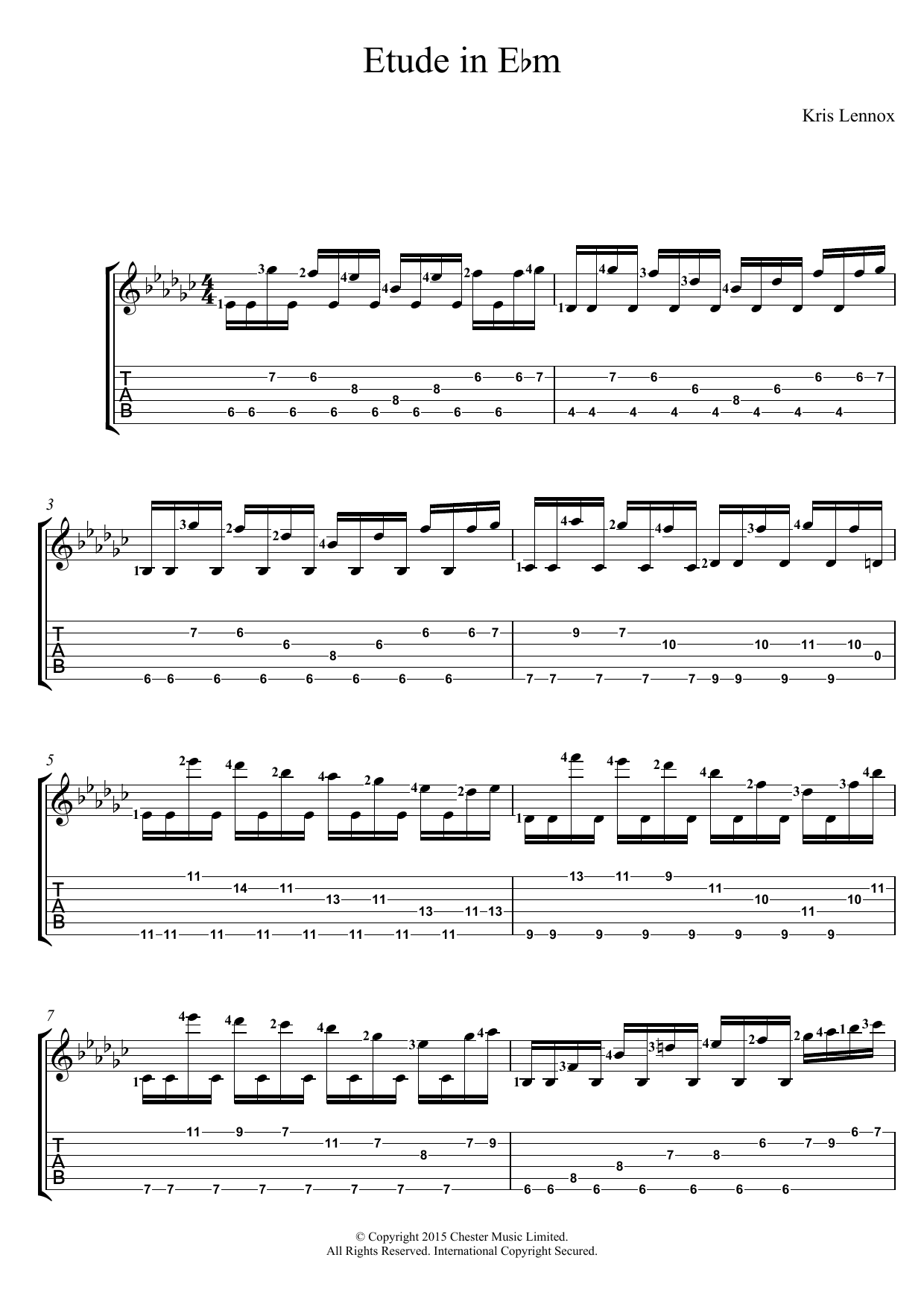 Download or print Kris Lennox Etude In E flat minor sheet music, chords and digital score arranged for Guitar Tab. This Rock score includes 7 page(s).