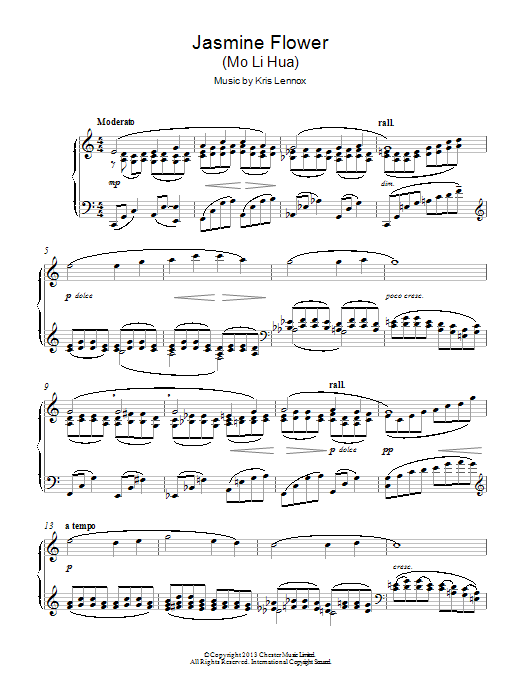 Download or print Kris Lennox Jasmine Flower sheet music, chords and digital score arranged for Piano Solo. This Classical score includes 2 page(s).