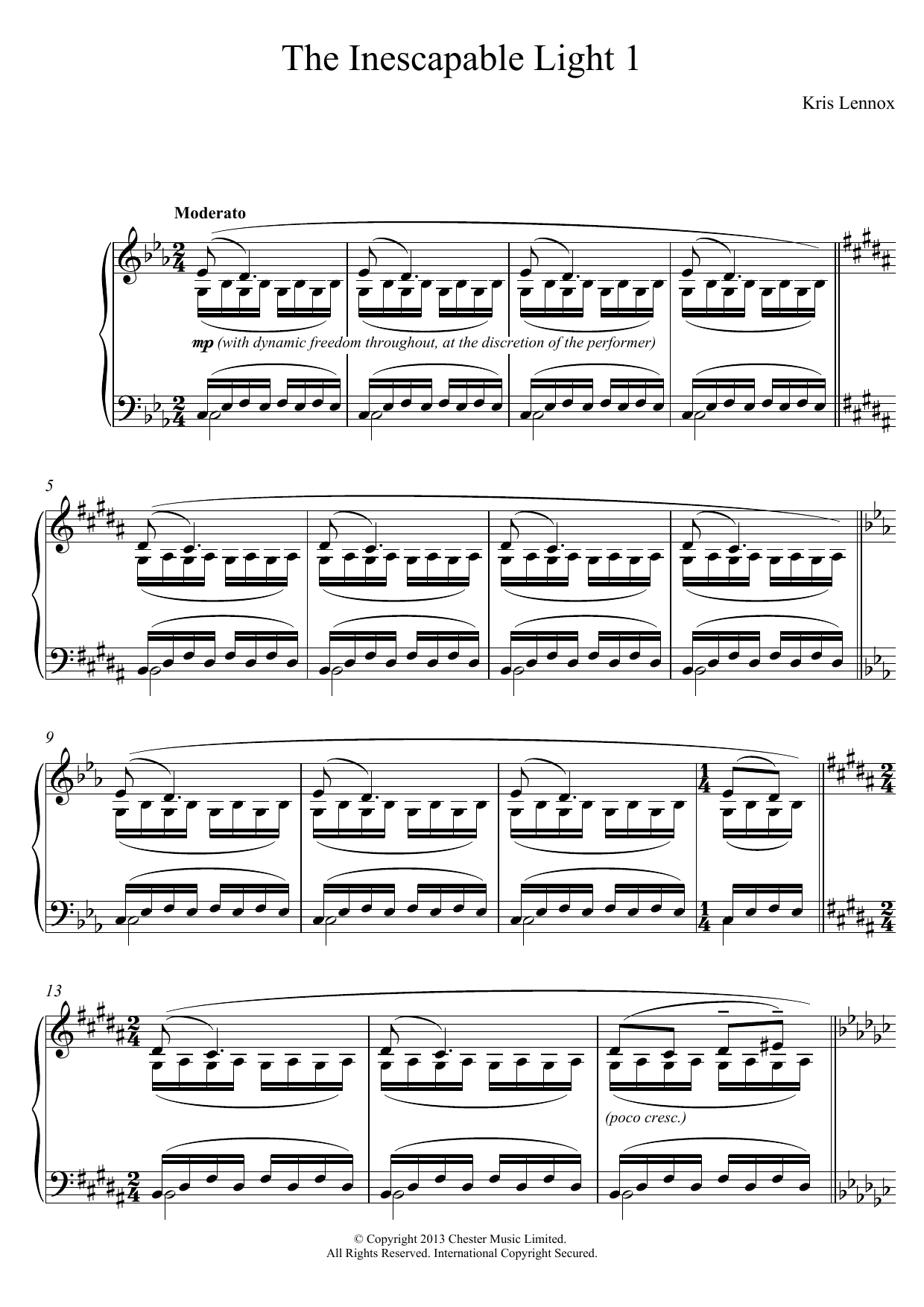 Download or print Kris Lennox The Inescapable Light #1 sheet music, chords and digital score arranged for Piano Solo. This Classical score includes 7 page(s).