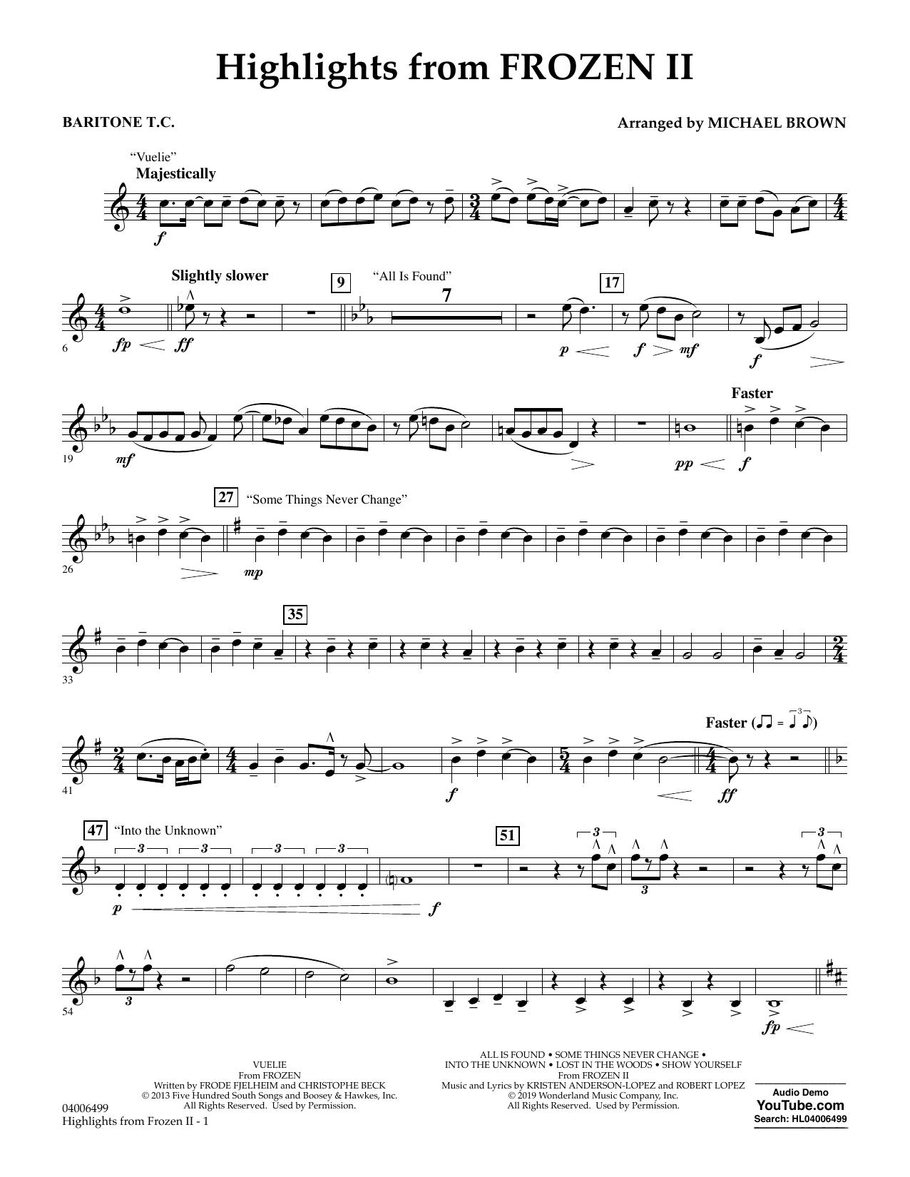 Quick facts Highlights from Disney's Frozen 2 (arr. Michael Brown) - Baritone T.C. about digital sheet music