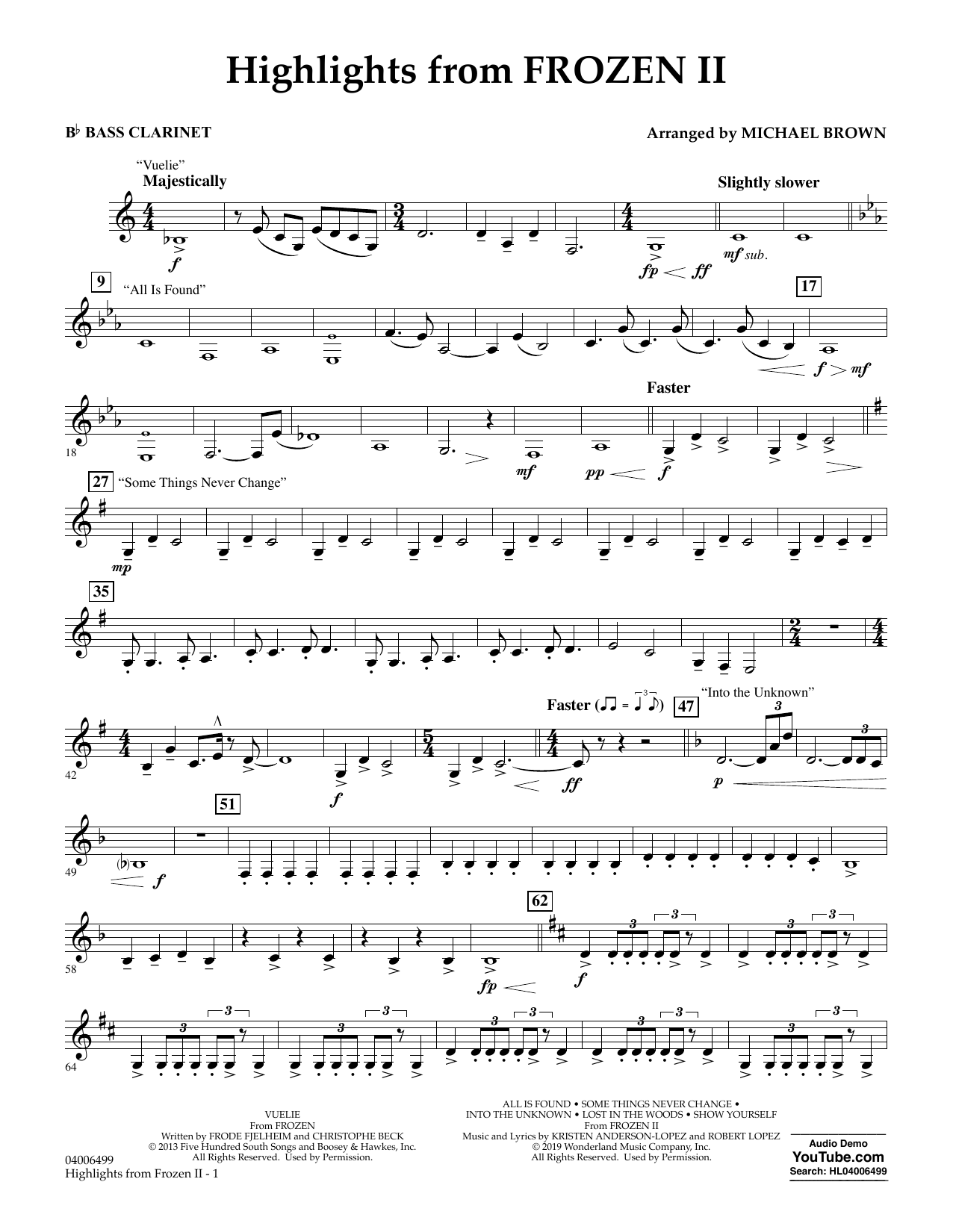 Quick facts Highlights from Disney's Frozen 2 (arr. Michael Brown) - Bb Bass Clarinet about digital sheet music