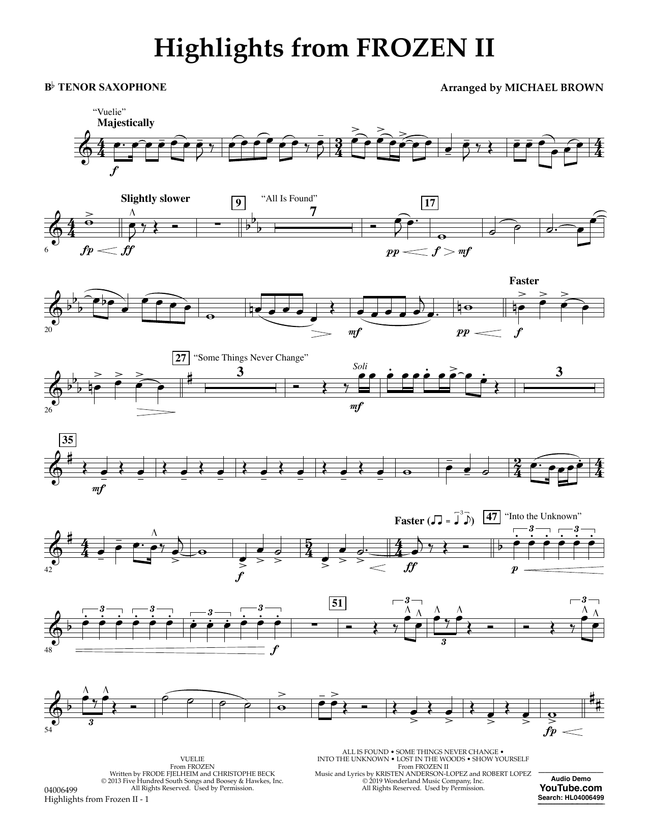 Quick facts Highlights from Disney's Frozen 2 (arr. Michael Brown) - Bb Tenor Saxophone about digital sheet music