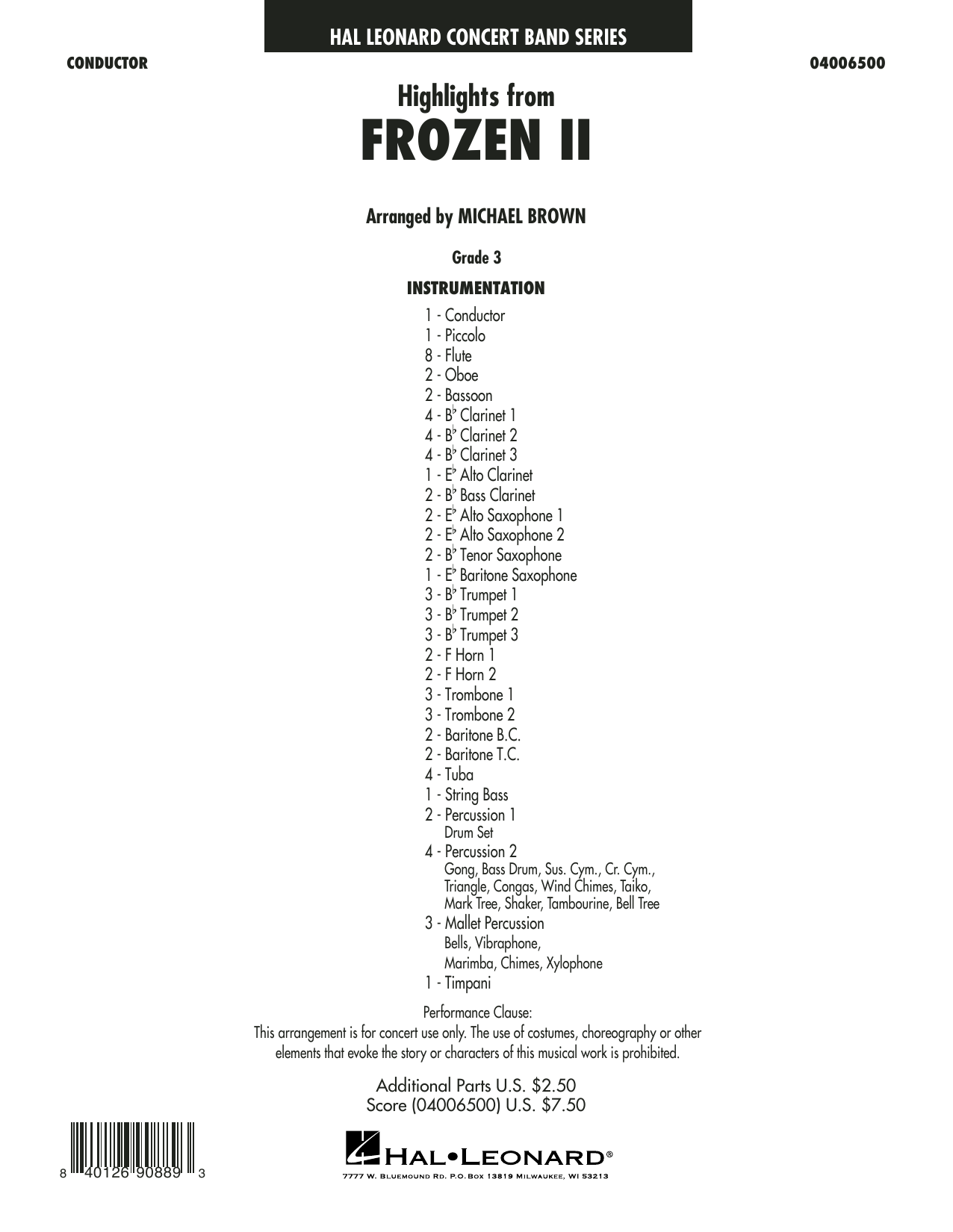 Quick facts Highlights from Disney's Frozen 2 (arr. Michael Brown) - Conductor Score (Full Score) about digital sheet music