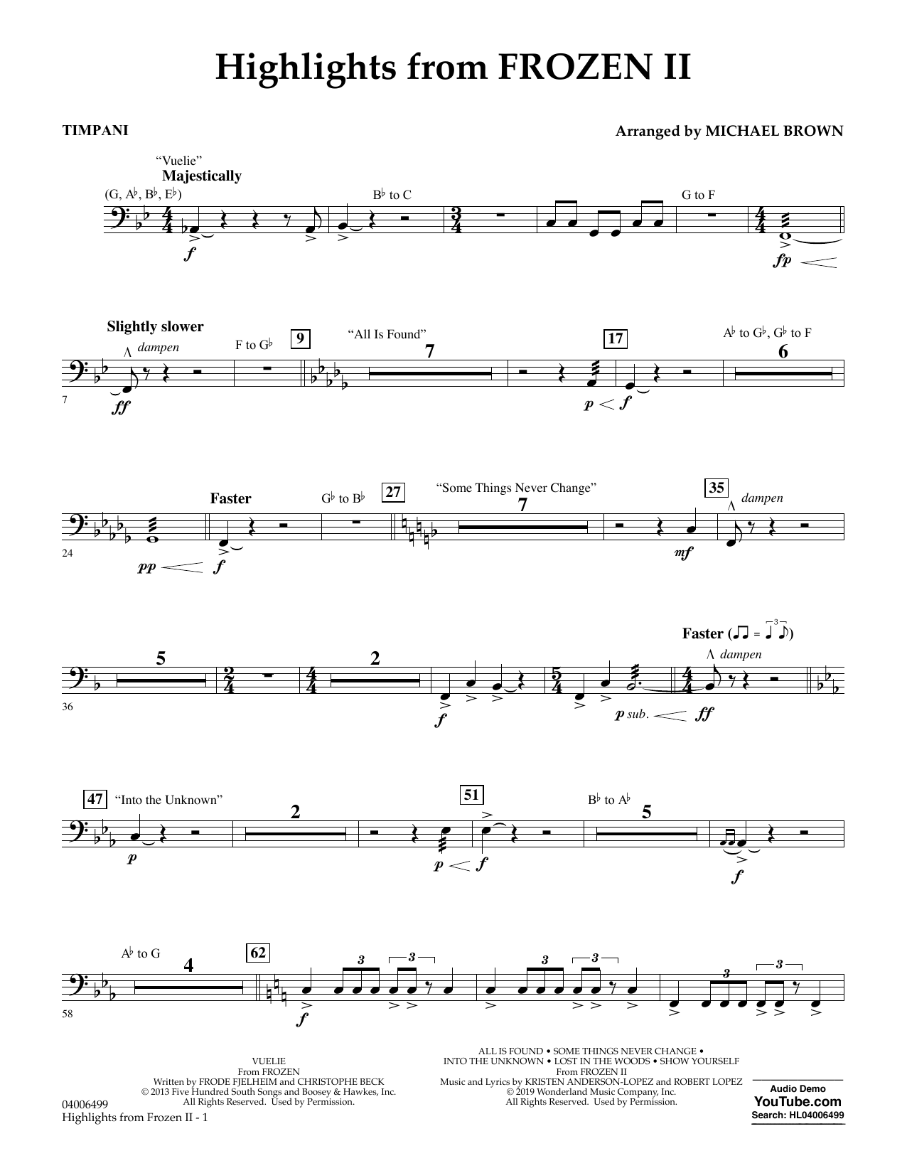 Quick facts Highlights from Disney's Frozen 2 (arr. Michael Brown) - Timpani about digital sheet music