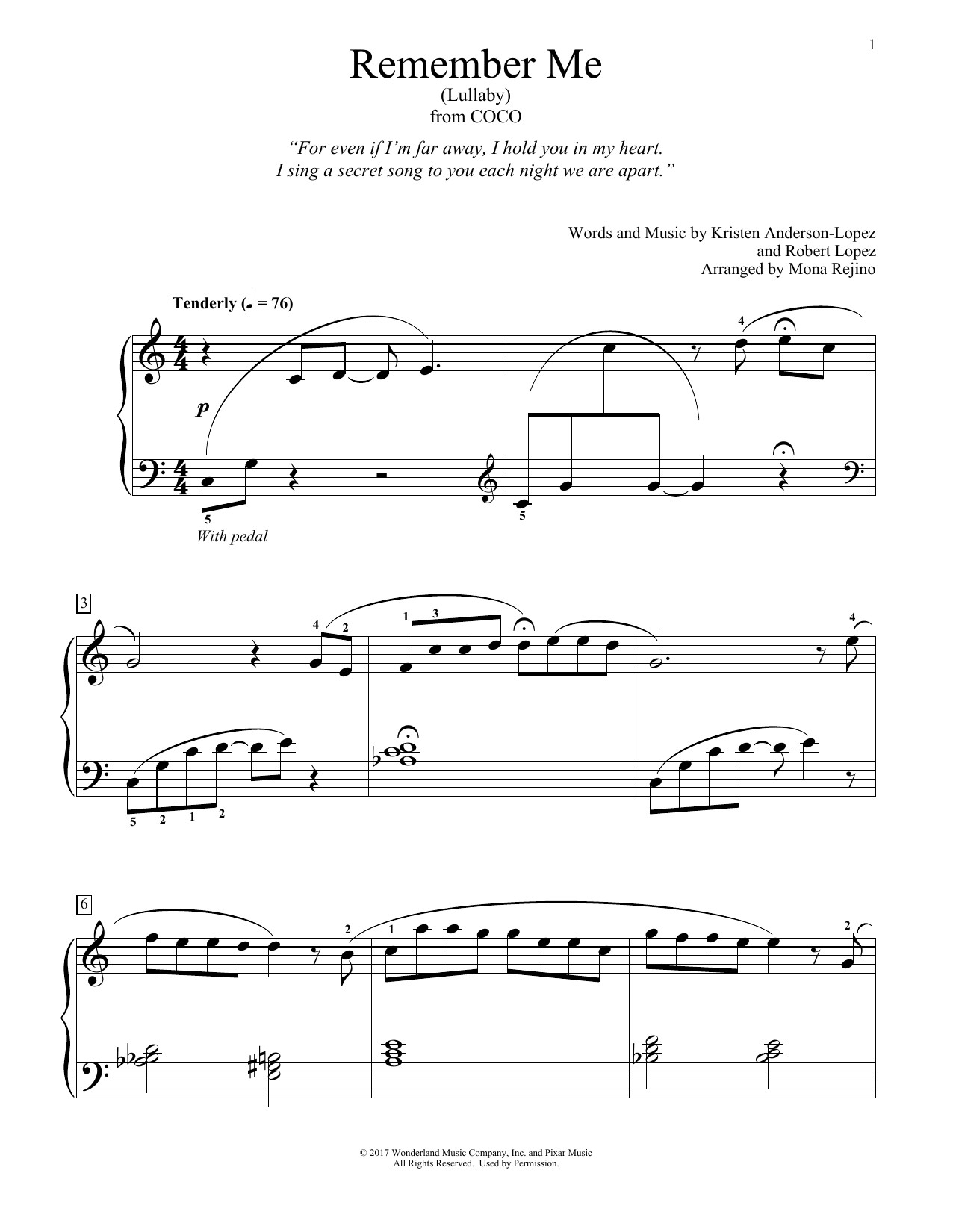 Quick facts Remember Me (Lullaby) (from Coco) (arr. Mona Rejino) about digital sheet music
