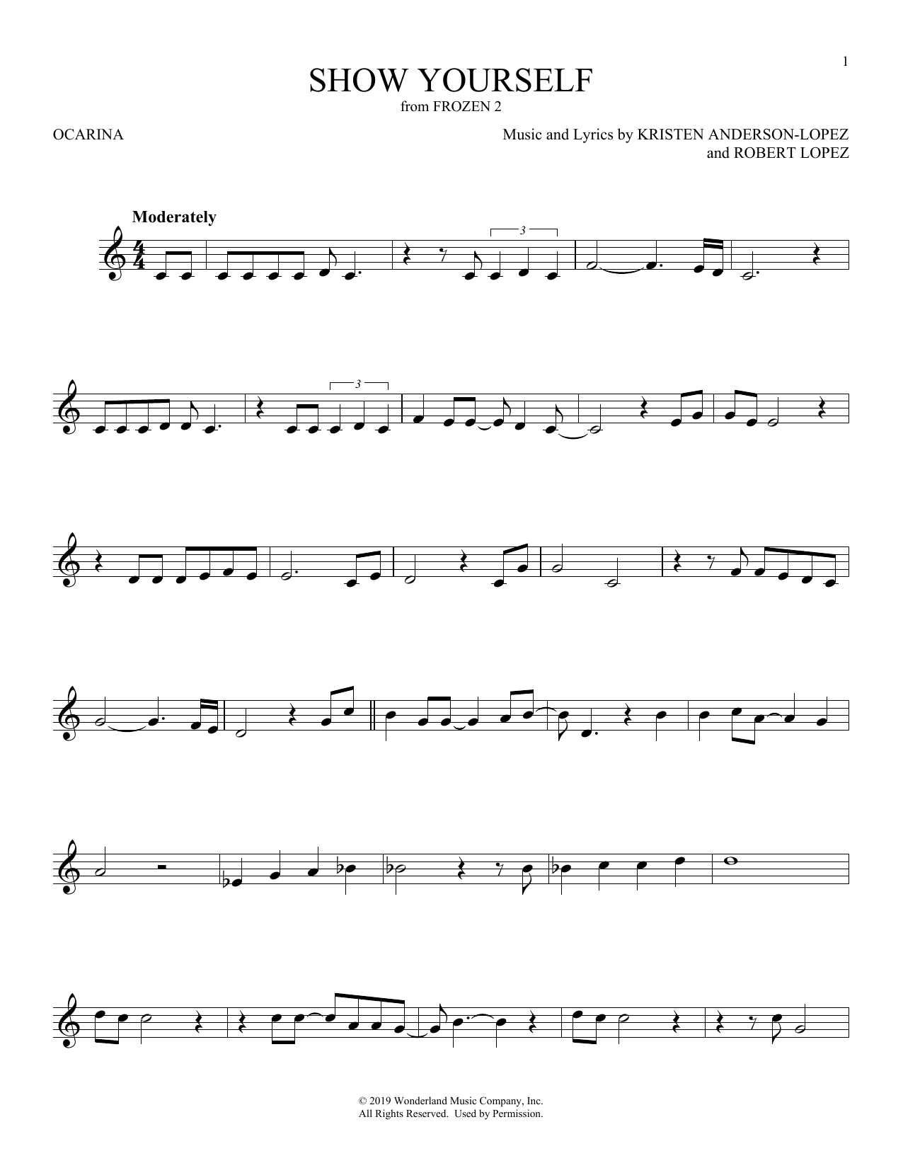 Download or print Kristen Anderson-Lopez & Robert Lopez Show Yourself (from Frozen 2) sheet music, chords and digital score arranged for Ocarina. This Disney score includes 2 page(s).
