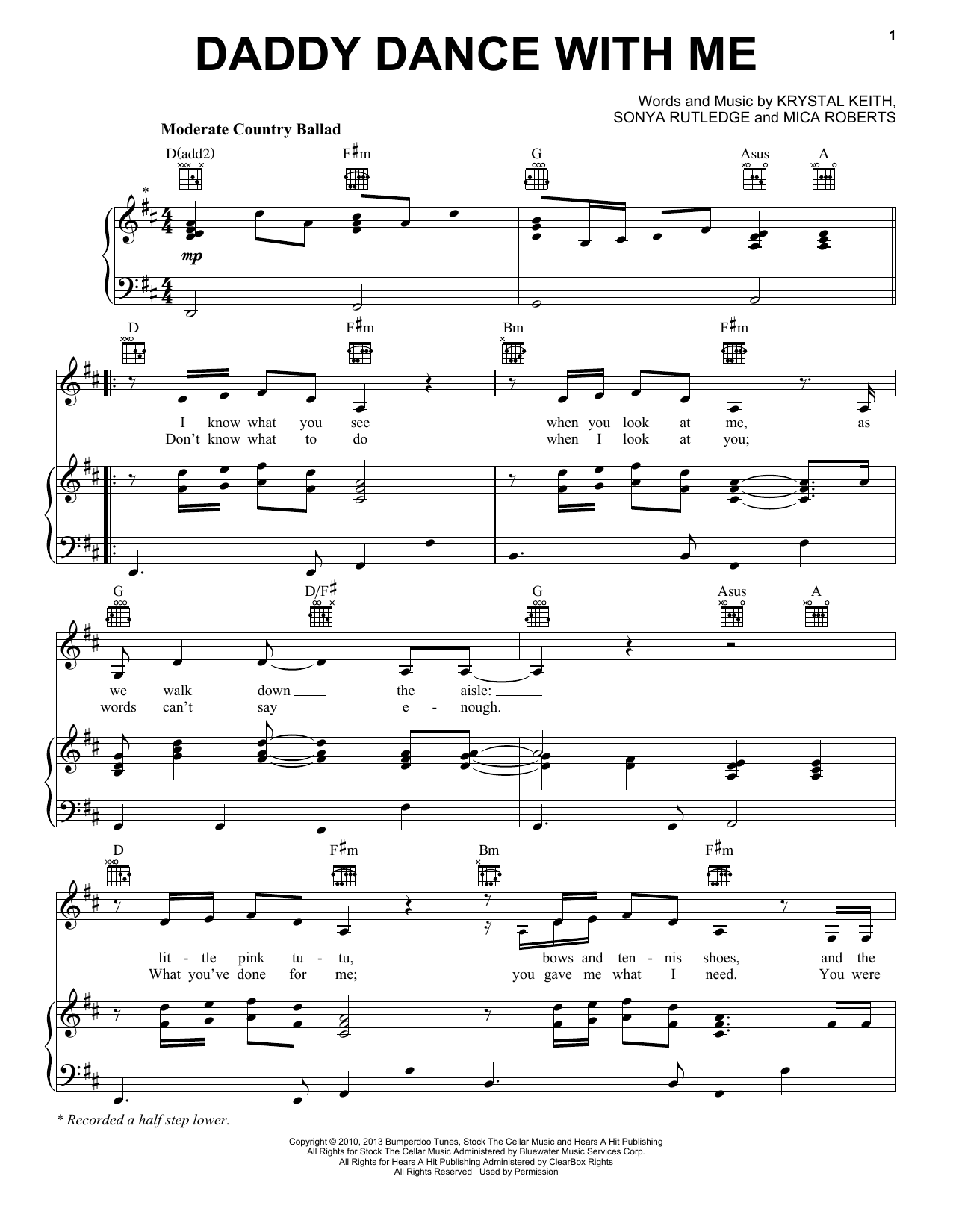 Download or print Krystal Keith Daddy Dance With Me sheet music, chords and digital score arranged for Piano, Vocal & Guitar Chords (Right-Hand Melody). This Pop score includes 5 page(s).