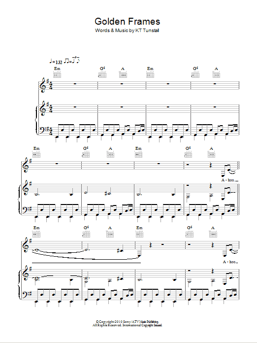 Download or print KT Tunstall Golden Frames sheet music, chords and digital score arranged for Piano, Vocal & Guitar Chords. This Pop score includes 9 page(s).