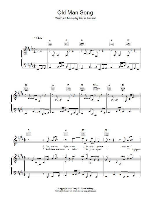 Download or print KT Tunstall Old Man Song sheet music, chords and digital score arranged for Piano, Vocal & Guitar Chords. This Pop score includes 6 page(s).