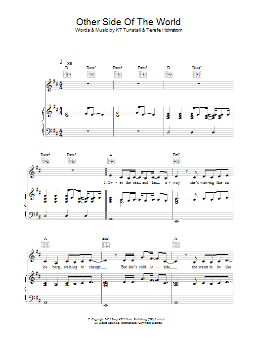 Download or print KT Tunstall Other Side Of The World sheet music, chords and digital score arranged for Violin Solo. This Pop score includes 2 page(s).