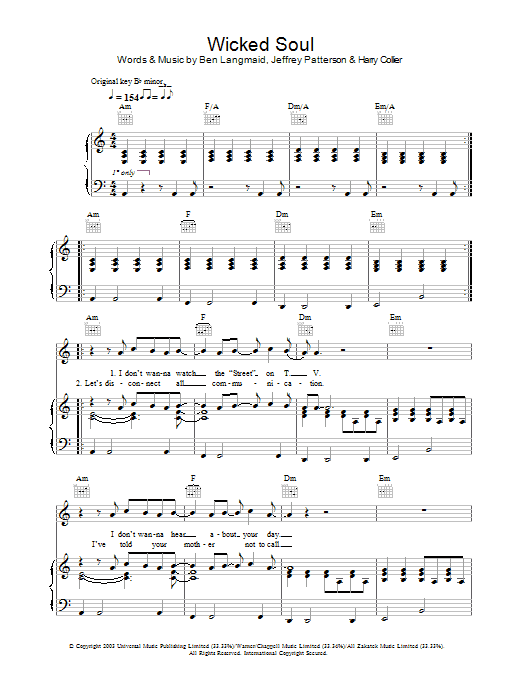 Download or print Kubb Wicked Soul sheet music, chords and digital score arranged for Piano, Vocal & Guitar Chords. This Pop score includes 5 page(s).