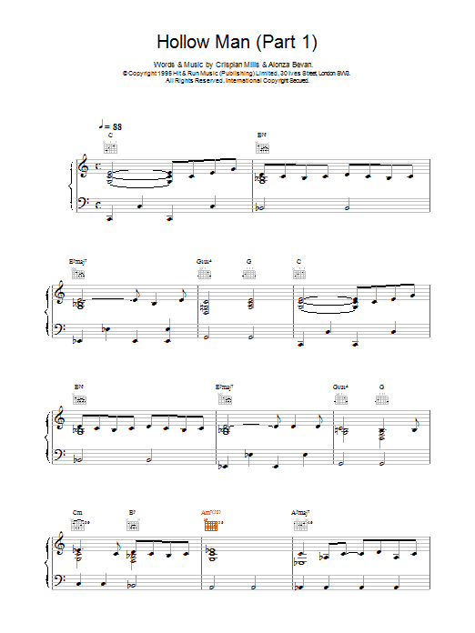 Download or print Kula Shaker Hollow Man (Part 1) sheet music, chords and digital score arranged for Piano, Vocal & Guitar Chords. This Alternative score includes 2 page(s).