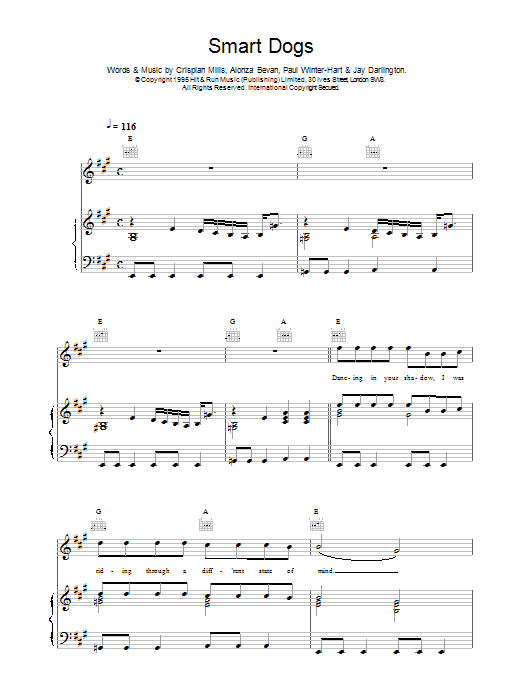 Download or print Kula Shaker Smart Dogs sheet music, chords and digital score arranged for Piano, Vocal & Guitar Chords. This Alternative score includes 4 page(s).