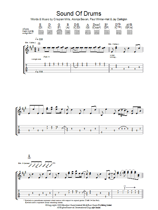 Download or print Kula Shaker Sound Of Drums sheet music, chords and digital score arranged for Guitar Tab. This Pop score includes 10 page(s).