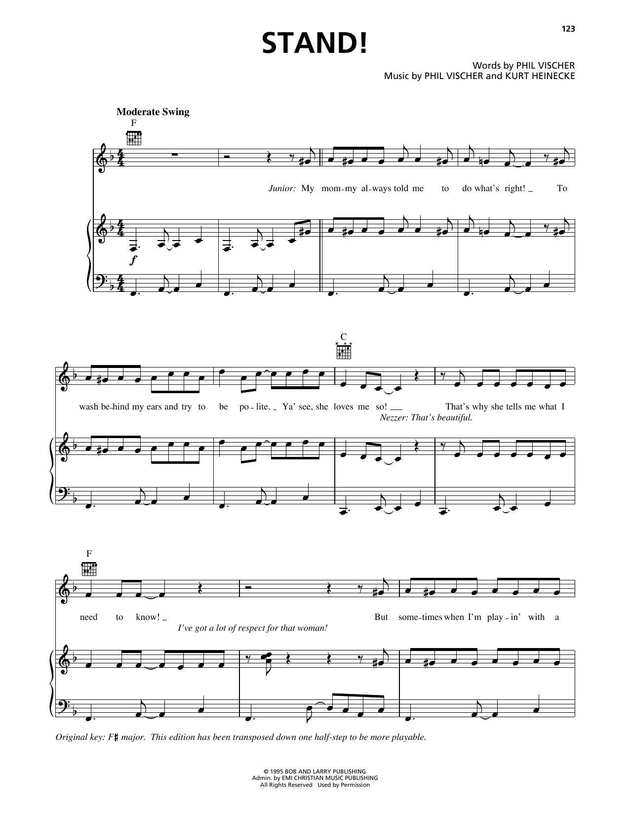 Download or print Kurt Heinecke Stand! (from VeggieTales) sheet music, chords and digital score arranged for Piano, Vocal & Guitar Chords (Right-Hand Melody). This Children score includes 5 page(s).