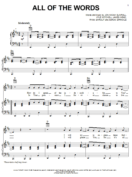 Download or print Kutless All Of The Words sheet music, chords and digital score arranged for Piano, Vocal & Guitar Chords (Right-Hand Melody). This Christian score includes 5 page(s).