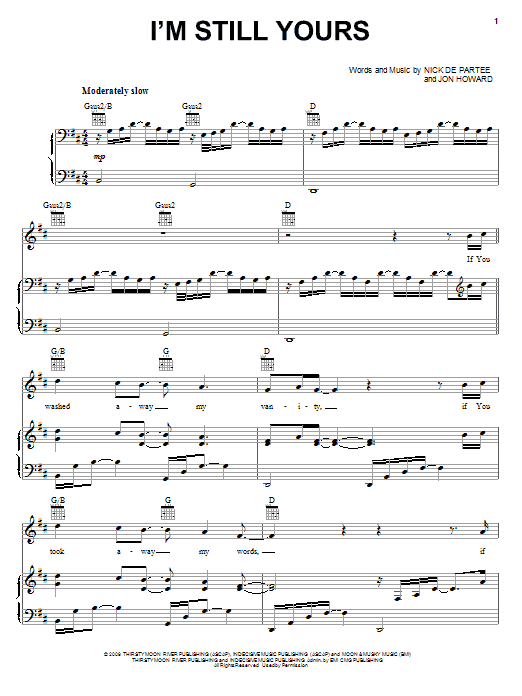 Download or print Kutless I'm Still Yours sheet music, chords and digital score arranged for Piano, Vocal & Guitar Chords (Right-Hand Melody). This Christian score includes 6 page(s).