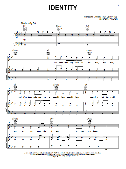 Download or print Kutless Identity sheet music, chords and digital score arranged for Piano, Vocal & Guitar Chords (Right-Hand Melody). This Pop score includes 7 page(s).