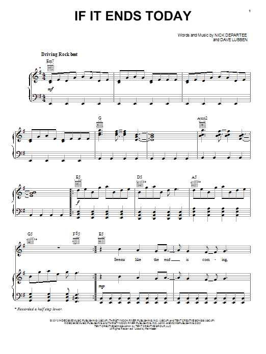 Download or print Kutless If It Ends Today sheet music, chords and digital score arranged for Piano, Vocal & Guitar Chords (Right-Hand Melody). This Pop score includes 9 page(s).