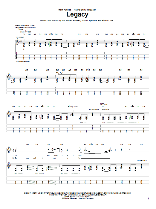 Download or print Kutless Legacy sheet music, chords and digital score arranged for Guitar Tab. This Christian score includes 7 page(s).