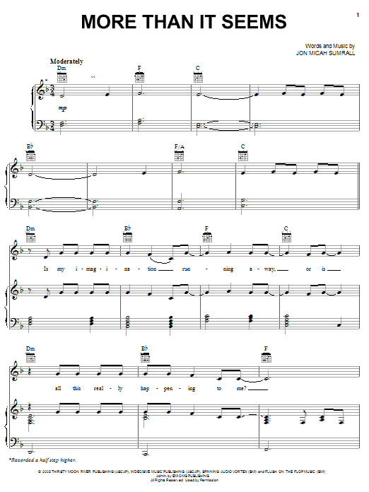 Download or print Kutless More Than It Seems sheet music, chords and digital score arranged for Piano, Vocal & Guitar Chords (Right-Hand Melody). This Christian score includes 9 page(s).
