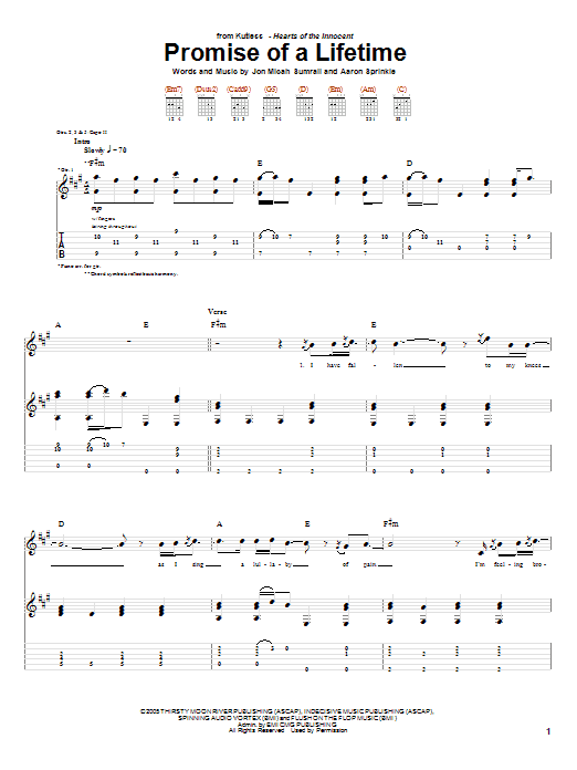Download or print Kutless Promise Of A Lifetime sheet music, chords and digital score arranged for Piano, Vocal & Guitar Chords (Right-Hand Melody). This Christian score includes 7 page(s).