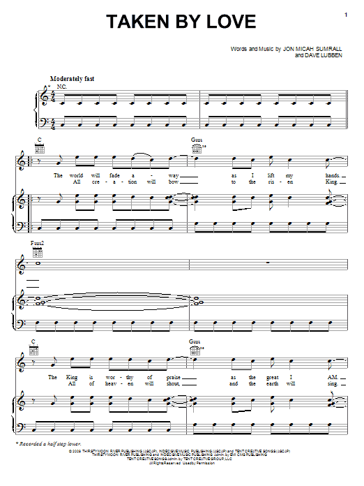 Download or print Kutless Taken By Love sheet music, chords and digital score arranged for Piano, Vocal & Guitar Chords (Right-Hand Melody). This Christian score includes 6 page(s).