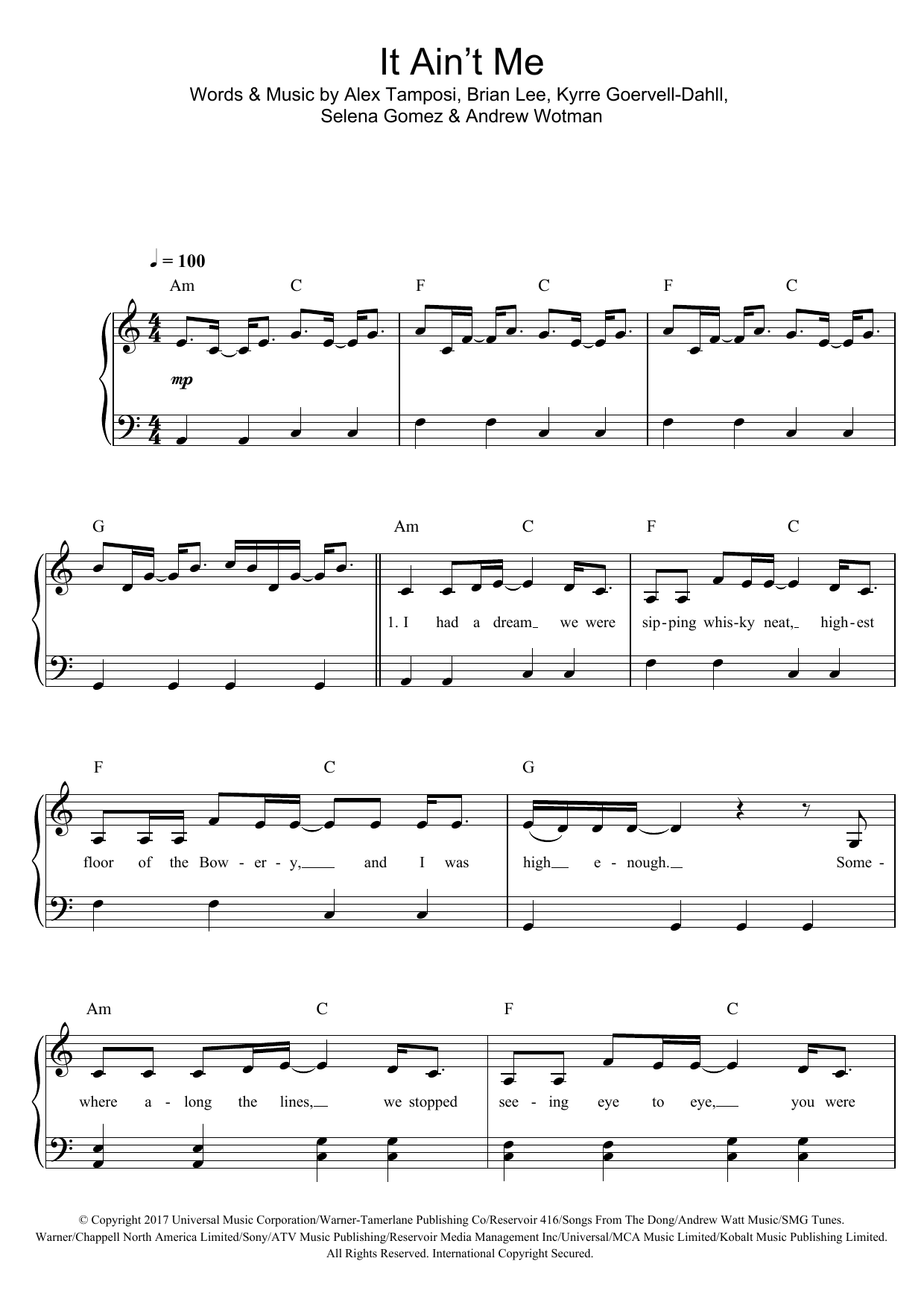 Download or print Kygo and Selena Gomez It Ain't Me sheet music, chords and digital score arranged for Easy Piano. This Pop score includes 6 page(s).