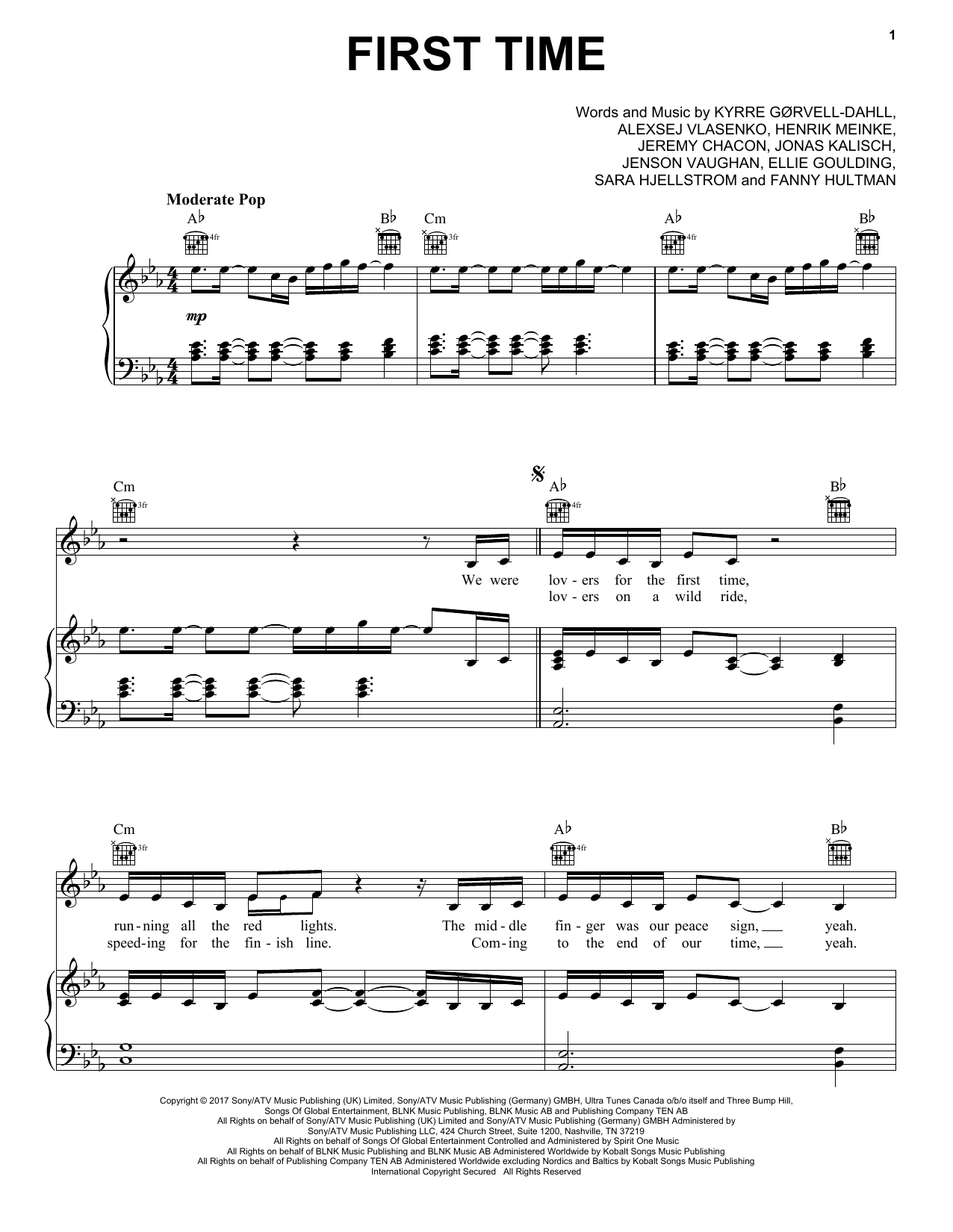 Download or print Kygo & Ellie Goulding First Time sheet music, chords and digital score arranged for Piano, Vocal & Guitar Chords (Right-Hand Melody). This Pop score includes 5 page(s).
