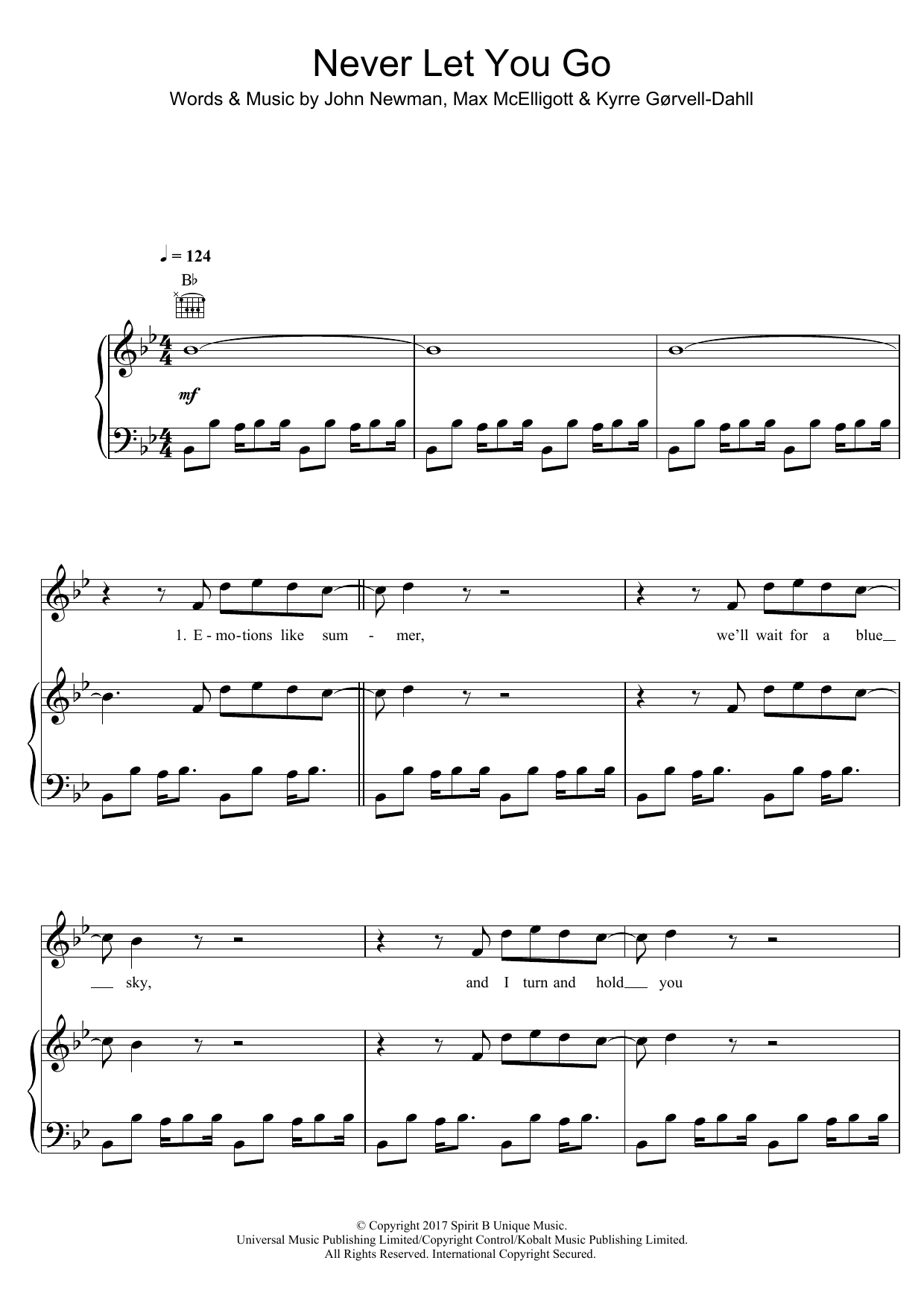 Download or print Kygo Never Let You Go (featuring John Newman) sheet music, chords and digital score arranged for Piano, Vocal & Guitar Chords. This Pop score includes 8 page(s).